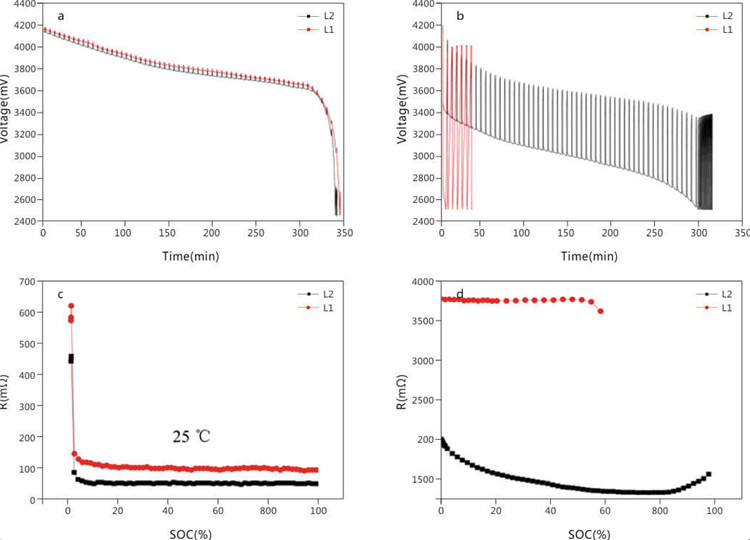 d. The impedance of 0.2% discharge of L1 system and L2 system at -40 ̊C with the curve of residual charge state;